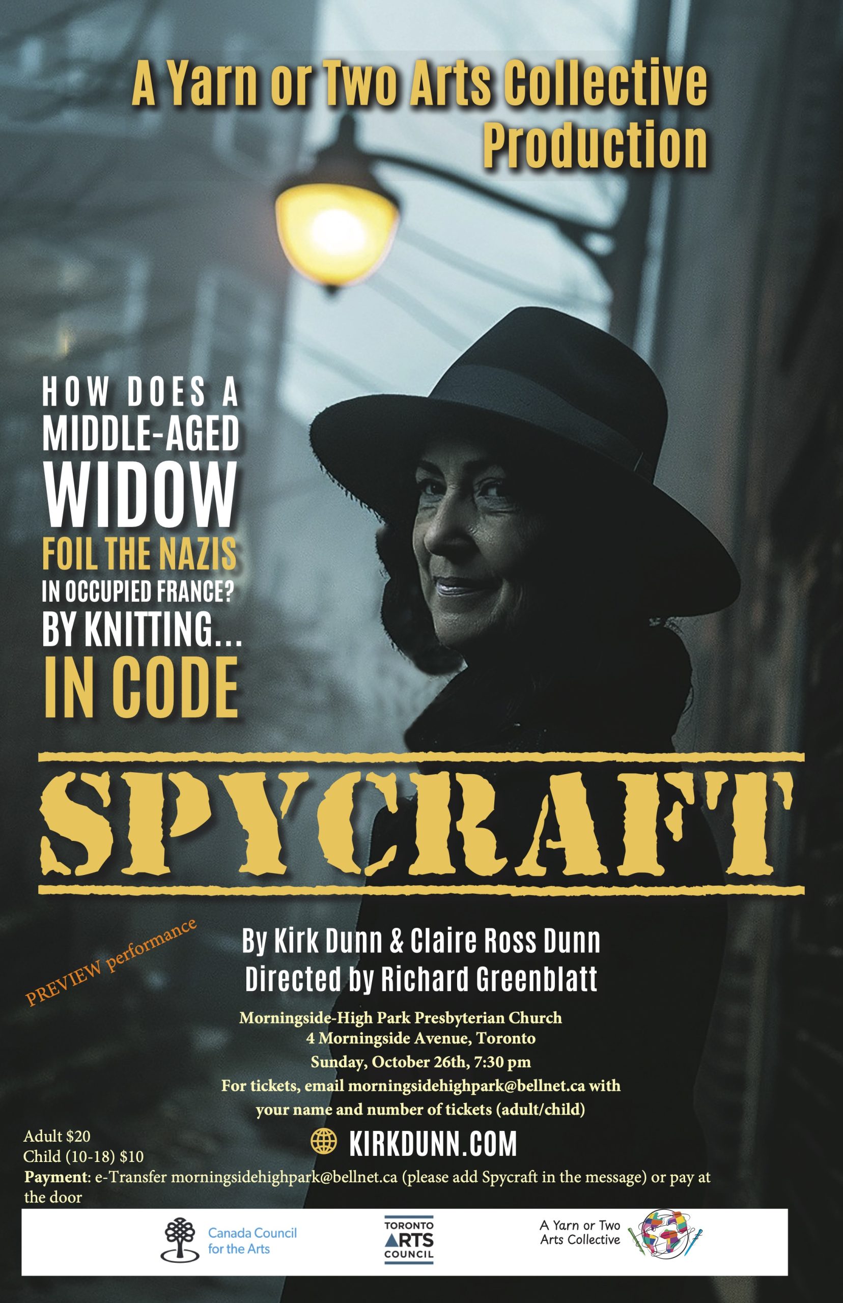 October 26th at 7:30 pm. Join us for a new play from our very own Kirk Dunn and Claire Ross Dunn.